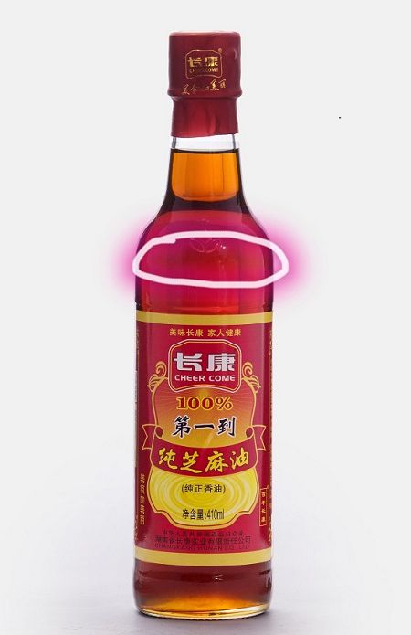 長康香芝麻調(diào)味油系列,這一款瓶型的產(chǎn)品,生產(chǎn)日期如圖所表示,位于產(chǎn)品瓶貼上方,用激光噴碼刻在瓶身上。