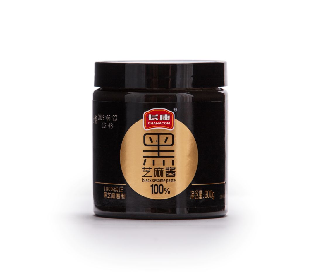 長康純芝麻醬、黑芝麻油248g, 這一款瓶型的芝麻醬,生產(chǎn)日期標(biāo)示于瓶蓋上。