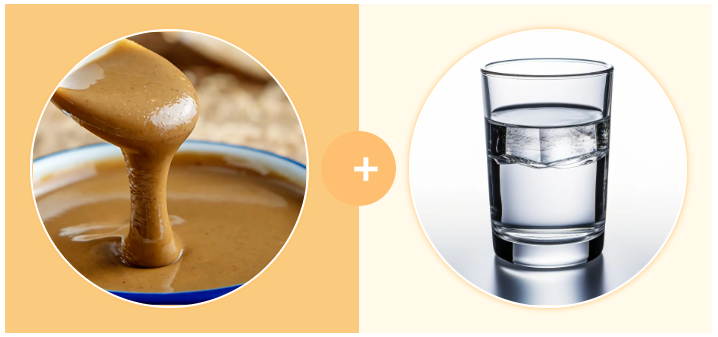取2勺芝麻醬,一邊加溫水,一邊快速攪拌即可。(注意:溫度大約在40-50度。溫度高了會影響口感,而冷水的溫度太低,芝麻醬很容易凝固成坨。)