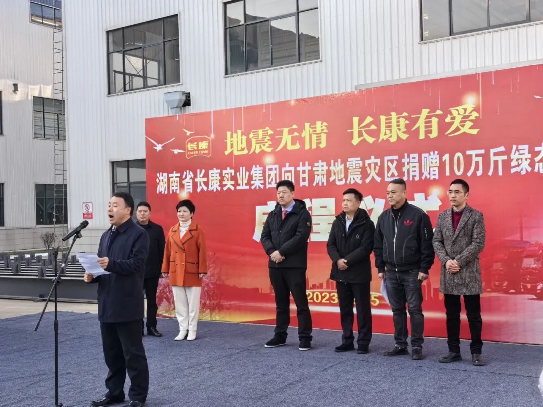 儀式開始時(shí),主持人譚博展進(jìn)行了簡(jiǎn)短的開場(chǎng)白,強(qiáng)調(diào)了長(zhǎng)康集團(tuán)在面臨重大災(zāi)難時(shí)應(yīng)有的社會(huì)責(zé)任感。隨后,譚光輝董事長(zhǎng)發(fā)表了感人至深的致辭。他表示:“湖南與甘肅有著深厚的歷史淵源和友誼。左宗棠率領(lǐng)湘軍進(jìn)軍新疆、收復(fù)失地時(shí),得到了甘肅人民的大力支持和援助。今天,甘肅人民遭遇了災(zāi)難,作為左宗棠家鄉(xiāng)的龍頭企業(yè),長(zhǎng)康集團(tuán)有責(zé)任和義務(wù)伸出援手”。同時(shí)對(duì)即將啟程的德坤高峰物流愛心車隊(duì)表達(dá)了崇高的敬意和衷心的感謝。他祝愿車隊(duì)一路順風(fēng),將長(zhǎng)康集團(tuán)的愛心平安送達(dá)災(zāi)區(qū)。