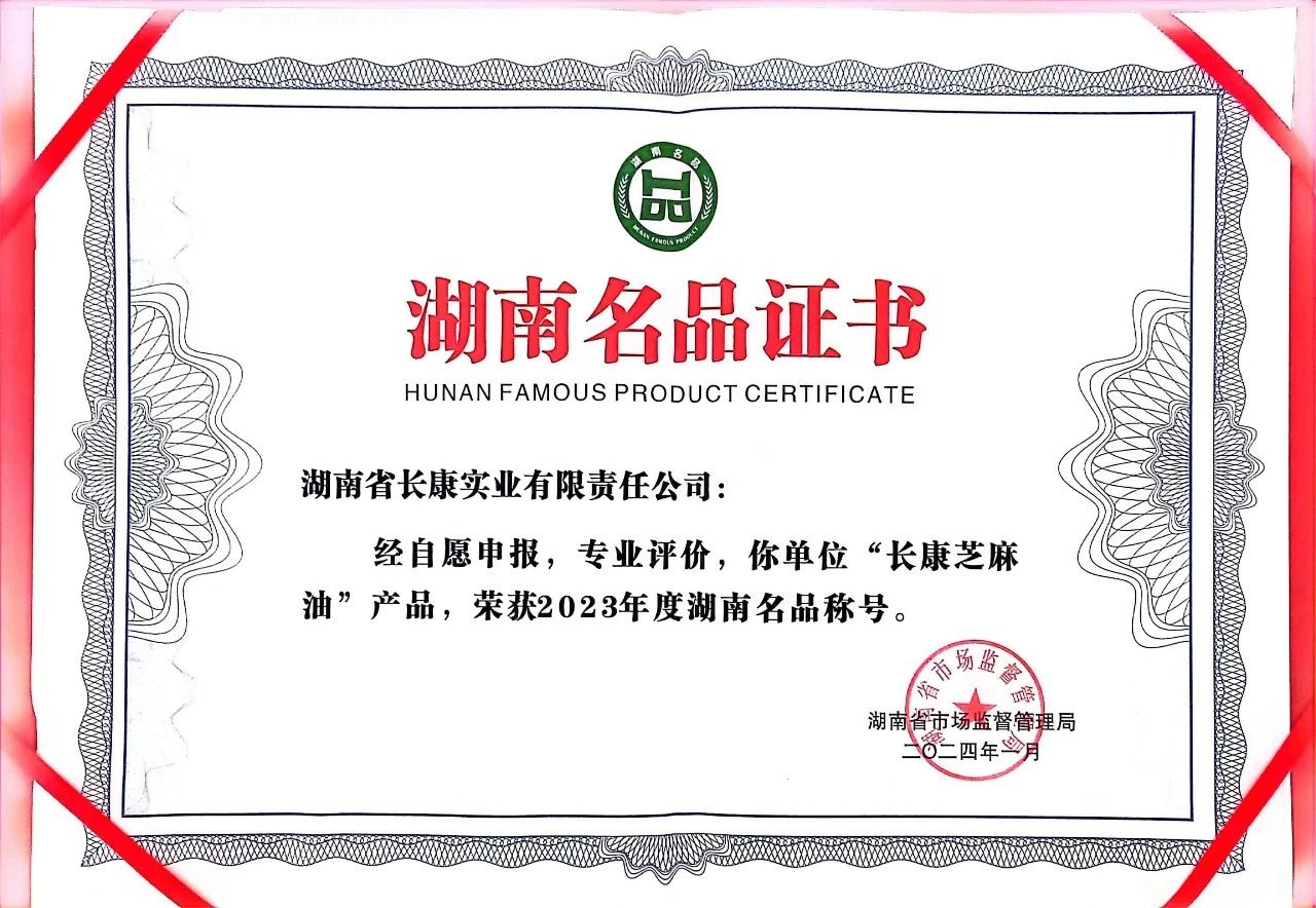 其中,長(zhǎng)康芝麻油憑借卓越的產(chǎn)品品質(zhì)和良好的市場(chǎng)口碑,榮獲2023年度湖南名品稱(chēng)號(hào)。