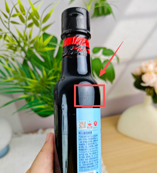 生抽、老抽等產(chǎn)品,生產(chǎn)日期位于瓶貼上方。